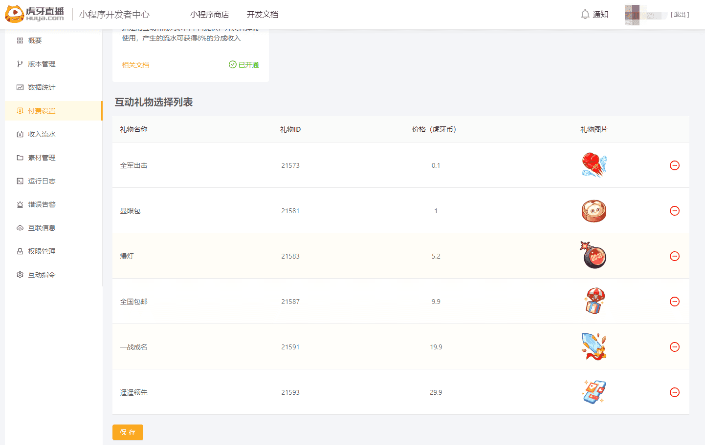 选择完毕,点击保存(目前最多支持选择6个礼物)