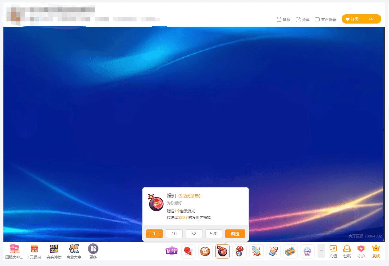 | 21583 | 爆灯 | 5.2虎牙币 | ![]() |
