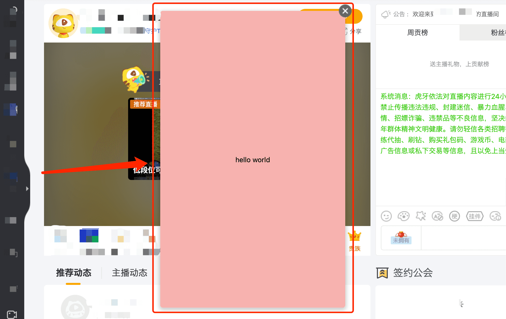 虎牙主站-面板小程序类型运行在虎牙WEB主站上面,提供类似虎牙平台的“互动通道”功能类似的能力。